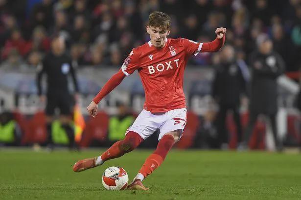 在诺丁汉森林的首个完整赛季(2021-2022赛季),成为加纳职业生涯的转折点。身披森林红色战袍的他,不再是那个需要庇护的雏鸟,用自己的跑动和调度成为球队不可或缺的中场引擎。整个赛季,他出场49次,贡献4球10助攻的亮眼数据。他的长传调度如同精准制导的导弹,他的远射破门一次次点燃城市球场的激情,而他积极的防守更是为球队筑起了第一道屏障。那个赛季最动人的画面,莫过于在升级附加赛上加纳送上了一脚定江山的传球。2022年5月29日,英冠升级附加赛森林迎战哈德斯菲尔德。上半场行将结束之际——森林队抓住最后的进攻机会大举压上,哈镇防守严密没有机会把球打入禁区,森林队前锋戴维斯将球传回禁区前沿左侧,21岁的加纳眼光老辣,敏锐地发现了机会……