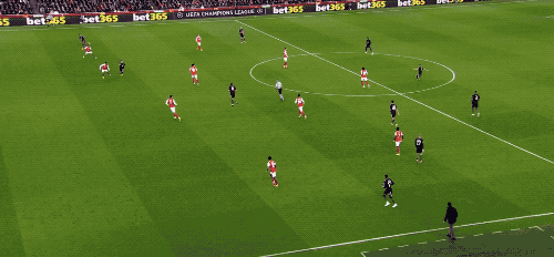 第62分钟,阿森纳打穿拜仁防线,诺伊尔一夫当关,挡出了赖斯的射门,莱默尔抢在萨卡之前,将球破坏。
