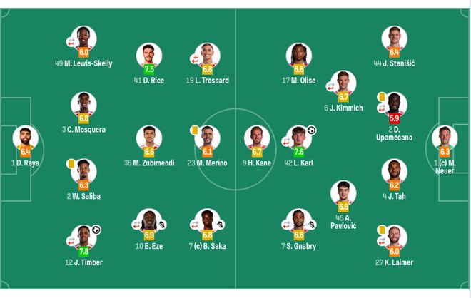 【出场阵容】阿森纳首发:1-拉亚、12-廷伯(80’4-本·怀特)、2-萨利巴、3-莫斯克拉、49-斯凯利(68’33-卡拉菲奥里)、36-苏维门迪、41-赖斯、7-萨卡(68’11-马丁内利)、10-埃泽(80’8-厄德高)、19-特罗萨德(38’20-马杜埃凯)、23-梅里诺。阿森纳替补:13-凯帕、35-塞特福德、5-因卡皮耶、16-诺尔高、22-恩瓦内里。拜仁首发:1-诺伊尔、2-于帕梅卡诺、4-塔、44-斯坦尼西奇(81’3-金玟哉、)、6-基米希(81’8-格雷茨卡)、27-莱默尔(72’20-比朔夫)、45-帕夫洛维奇、7-格纳布里(72’11-杰克逊)、9-凯恩、17-奥利塞、42-伦纳特·卡尔(81’22-格雷罗)。以上内容请关注首页JRS