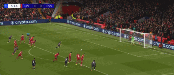 下半场第55分钟,利物浦再度落后,凯尔凯兹跟防没跟住,目送蒂尔推射破门,帮助埃因霍温2-1再度领先。