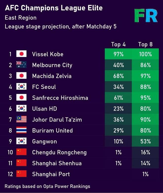 最新出炉的晋级排行榜(上图)显示,刚刚击败申花的神户胜利船已经100%确定可以晋级到亚冠16强,全部东亚区12支球队的晋级排名从高到低依次为:神户胜利船、町田泽维亚、广岛三箭、柔佛新山、首尔FC、墨尔本城、蔚山现代、武里南联、江源FC、成都蓉城、上海申花、上海海港。从这个排名来看,J联赛三队坐拥前三,中超三强倒数前三,连近些年表现不佳的澳超球队也让人刮目相看,K联赛三强的排名都高于中超三强。作为中超主要对手的泰超球队武里南联,也几乎稳稳晋级。中超已经成为这东亚区榜单中的最弱联赛的存在,是不争事实。