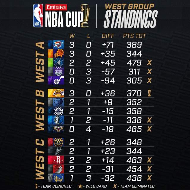 - NBA | 独一档,NBA杯仅湖人猛龙提前出线,剩余12队争6个淘汰赛席位
