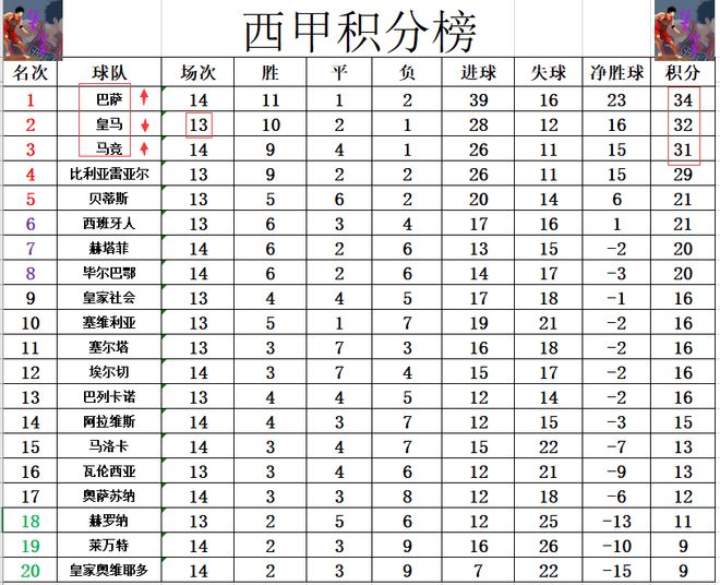 - 西甲 | 西甲最新积分战报:榜首易主,马竞奋起直追,前3只差3分
