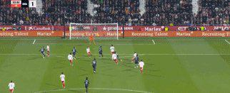 40’姆巴佩在门前混战中捅射破门,但因手球在先进球无效。