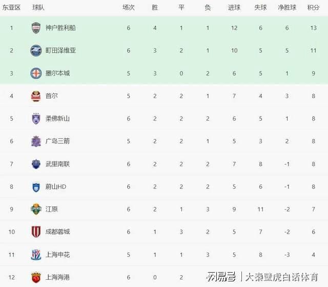 - 中超 | 亚冠精英赛积分榜:成都和海港仍列10和12位,町田升至次席
