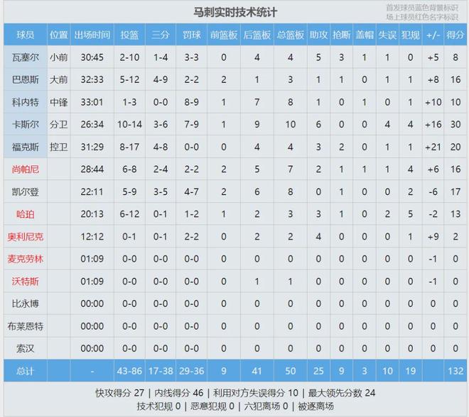 第四节决战,主场作战的湖人起势了。斯玛特单节4记三分,里夫斯上篮打成2+1,最后4分钟湖人追到8分。福克斯和卡斯尔化身客场消音器,三分浇灭湖人反扑。全场战罢,马刺132-119淘汰湖人,恭喜马刺打进NBA杯半决赛。文班亚马缺席12场,马刺9胜3负。上赛季最佳新秀卡斯尔,14投10中狂砍30分10板6助,正负值+16。福克斯20分4板3助2断、凯尔登17分8板、尚帕尼和巴恩斯各砍16分。东契奇35分5板8助、斯玛特26分、詹姆斯19分15板8助3帽。