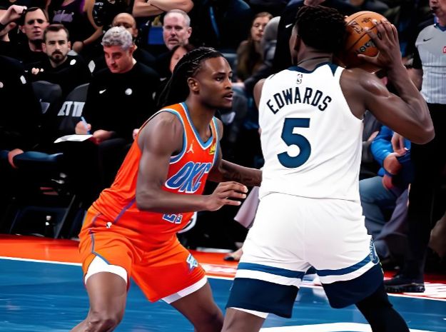 摊开数据单,场均出场27.8分钟,个人贡献8.5分3.1篮板2.5助攻2.3抢断,相比于单调数据,高居抢断榜单第一位的表现绝对是意外惊喜。在这场大胜太阳的比赛中,面对本赛季抢断联盟第一的太阳,狄龙全场16投4中,吉莱斯皮5中1;面对太阳攻防两大主力,完全被压制到毫无存在感。而根据统计数据,本赛季雷霆面对湖人时,东契奇被华莱士防到全场20投仅19分,对阵勇士把库里限制到13投11分,对位莫兰特更是18投11分。