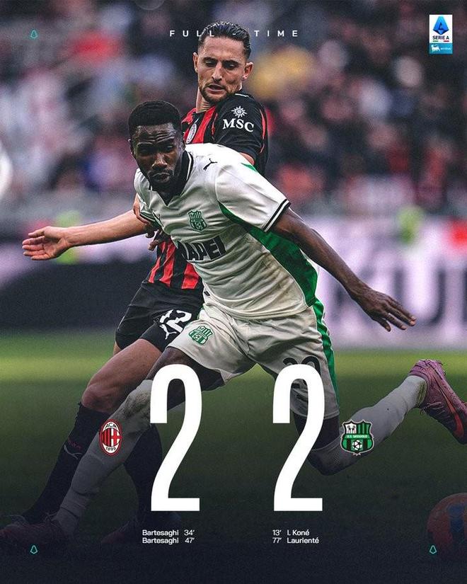 联赛3连胜被终结,米兰近6次意甲主场对阵萨索洛仅1胜