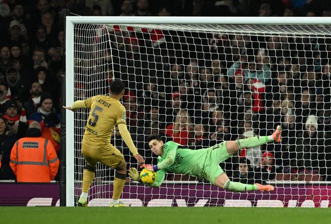 本场比赛的点球大战一直持续到第8轮才真正分出胜负,其中前15个点球更是无一被罚丢。最终第16个出场的水晶宫后卫拉克鲁瓦成为了牺牲品,他的射门被阿森纳门将凯帕成功扑出。不过有趣的是,凯帕从第5轮开始就坚持扑向自己的右侧,这种颇有些守株待兔意味的方式最后居然真的取得了成效。凯帕在本场比赛点球大战最后四轮的扑救莱尔马射向球门右侧得手