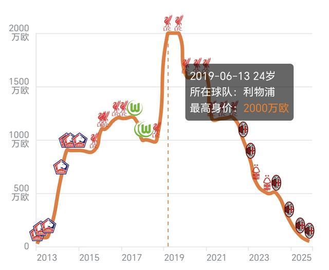 意甲节奏的不适应与遭遇伤病困扰,奥里吉仅在22-23赛季为米兰一线队出战各项赛事36场比赛10次首发,仅有2球1助,自此之后再也没有代表米兰一线队出过场。谁能想到,昔日利物浦锦鲤奥里吉,会在一名职业球员的黄金年龄无球可踢,在米兰秒变躺平咸鱼!长达940天未踢正式比赛,24岁时身价巅峰2000万欧元,30岁仅有50万欧元,6年缩水40倍!