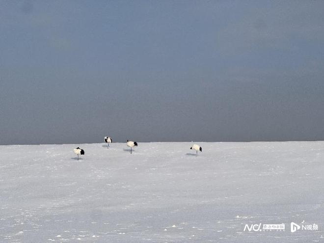 在齐齐哈尔扎龙国家级自然保护区内,成群结队的丹顶鹤在银白色的雪地之上起身飞舞,为游客带来一场别具特色的视觉体验表演,而在众多游客中,不乏来自四川、广东的南方游客。