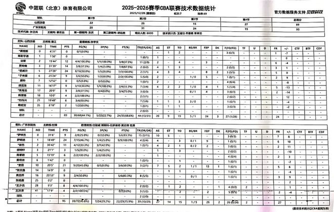 北京时间2025年12月28日19:35,2025-2026赛季CBA联赛第七轮继续进行,山西汾酒主场迎战广东东阳光。两队历史上共交手48次,山西汾酒10胜38负,上赛季常规赛两队交手7次,山西汾酒6胜1负。本场比赛,山西队整体发挥欠佳,全队未能保持良好的心态,进攻端处理球过于急躁,命中率偏低,出现较多失误,末节全队奋力拼搏一度将比分迫近,但最终未能把握住机会,遗憾落败,最终全场比赛结束,山西汾酒89:95不敌广东东阳光。